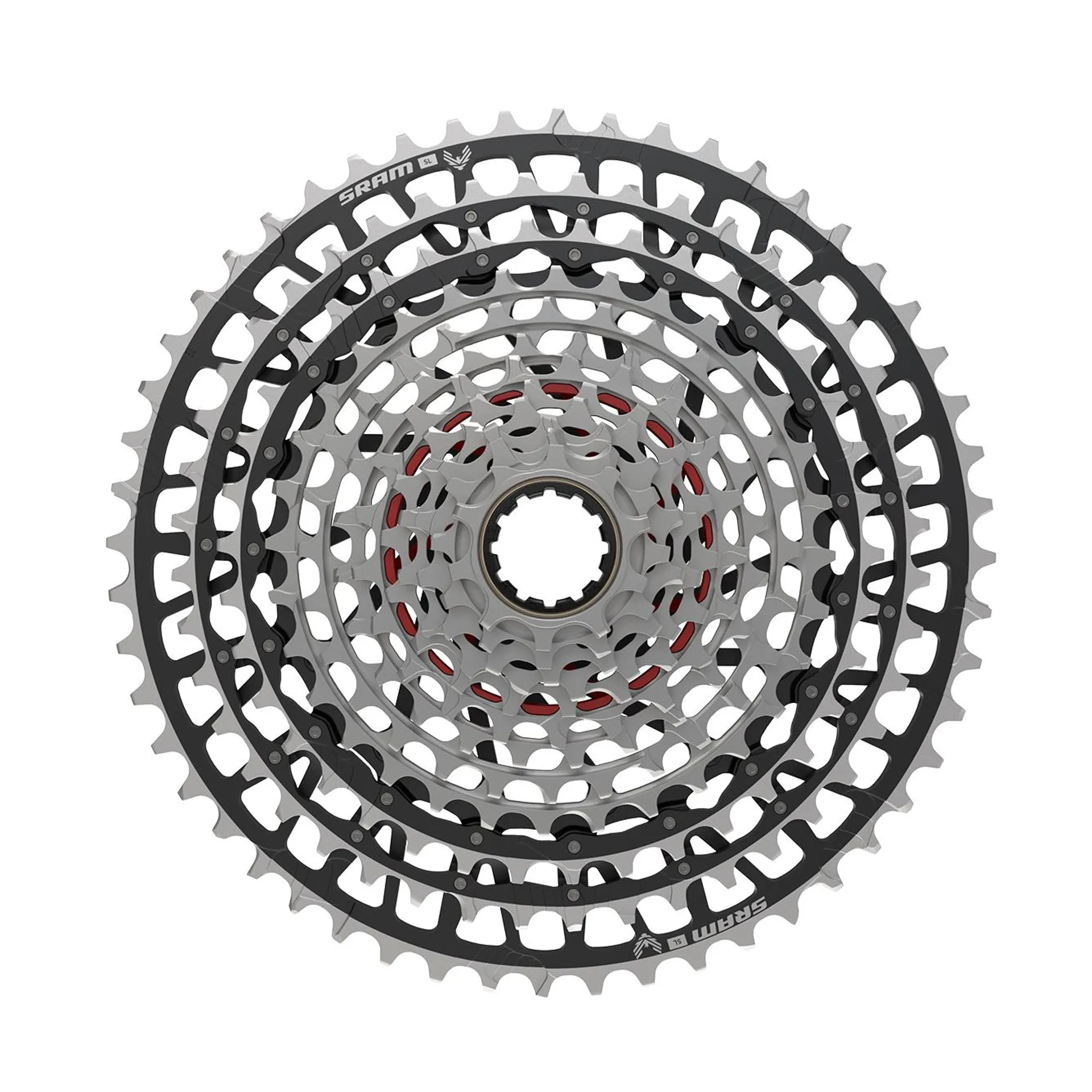 the xx sl eagle transmission (t-type) cassette is a major reason why eagle transmission offers the best-ever inboard and outboard shifting performance under load. Thanks to its full x-sync design, the harder you pedal, the better it shifts. Literally. Our lightest eagle cassette in history lasts far longer and delivers more precision. Its new-gen design is fully machined, hardened steel x-dome architecture for gears 1-9 and an ultra-lightweight, all-aluminum spider cog for gears 10-12. Engineered as integrated and interdependent transmission components, the xx eagle transmission cassette and derailleur contact directly, ensuring perfect alignment on every bike. From its massive 520% gear range, the 52 tooth cog steps down with improved gear progression with 44 and 38 tooth cogs in the low end (compared to the eagle drivetrain 10-52-tooth cassette). Featuring a clearly marked setup cog, install is both simple and fool-proof.